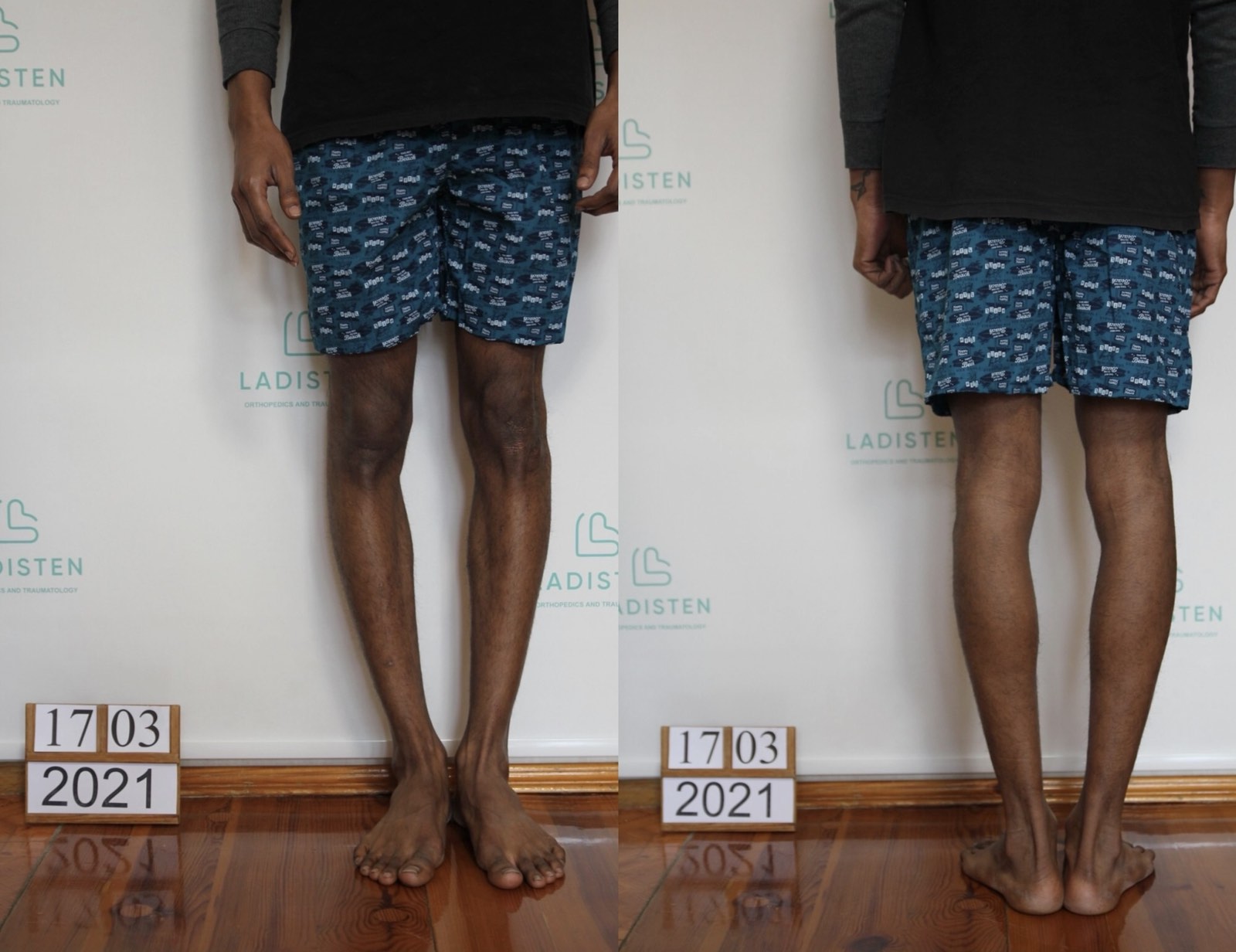 Patient from India arrived for bow legs correction. On the first photos we can see patient before surgery, second photo – result after removing fixators.
