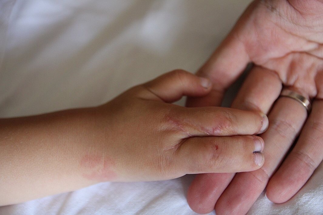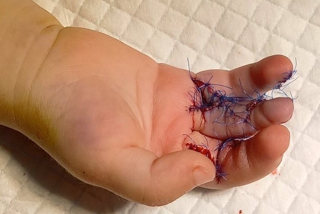 Тяжелая врожденная аномалия развития кисти рук — синдактилия 2-3-4 пальцев, аплазия 5 пальца кисти руки.